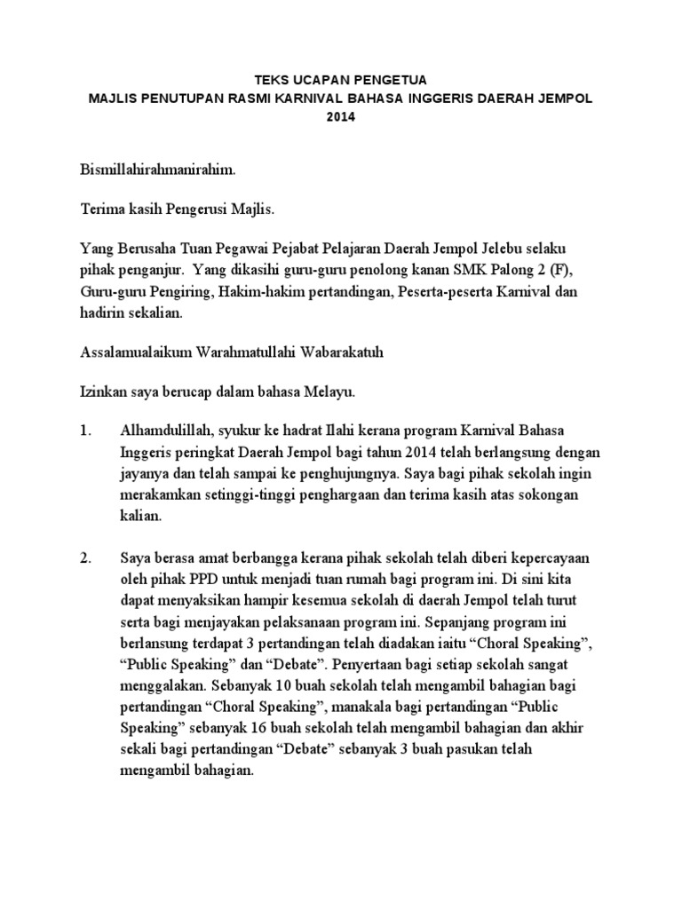 Teks Ucapan Perhimpunan Bahasa Inggeris Pdf